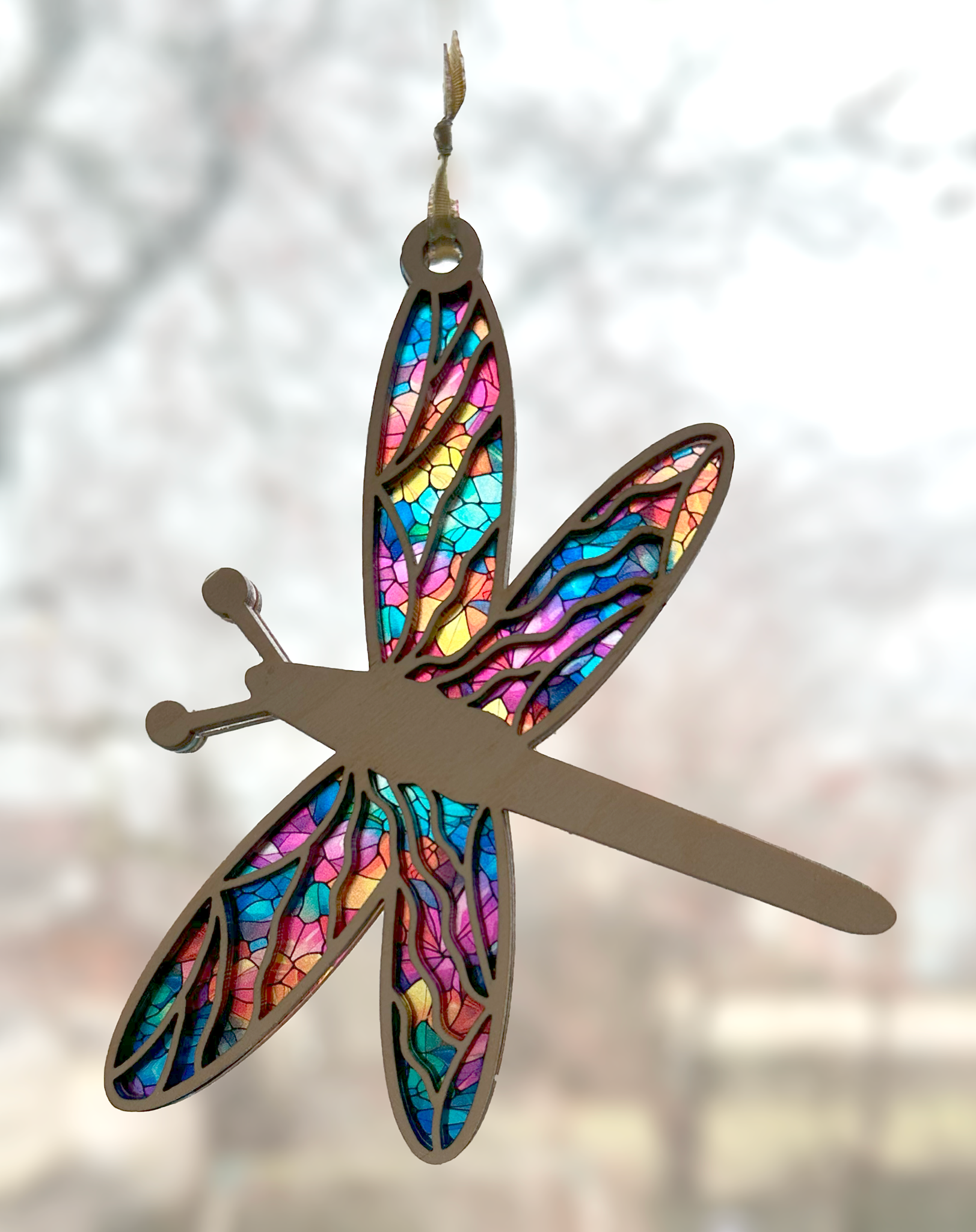 This charming window hanging features a colorful acrylic design nestled between two sturdy 1/8″ plywood layers. It comes with a suction‑cup hanger so you can brighten any window with ease.