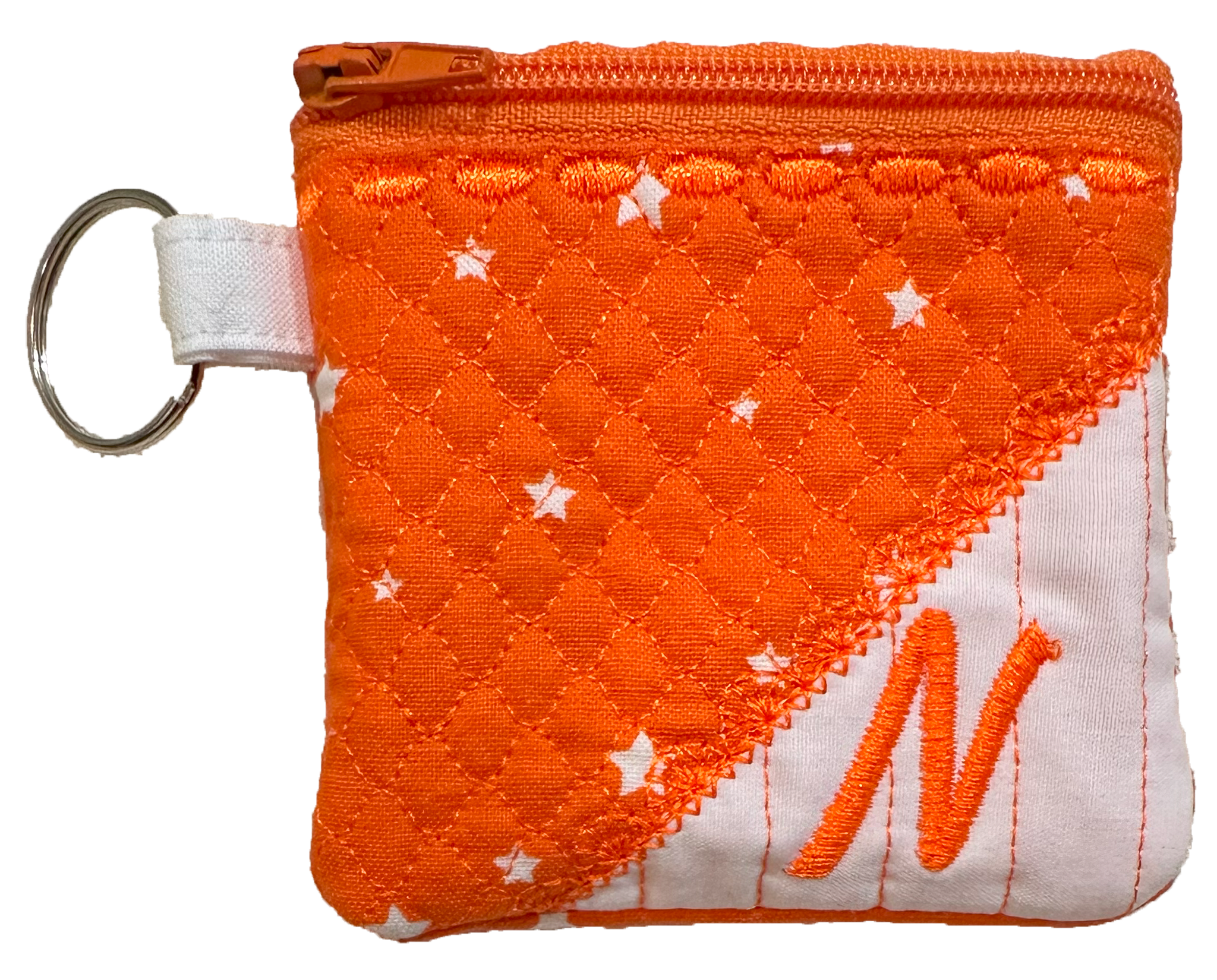 A charming 3″ x 3″ fully lined embroidered coin or accessory pouch, complete with a handy keyring attachment.