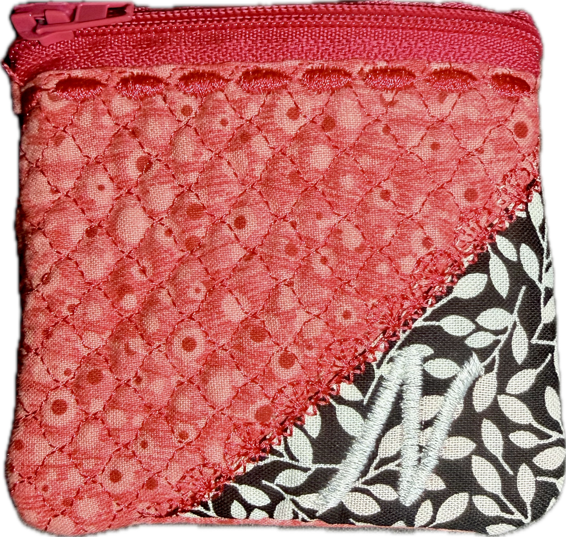 A charming 3″ x 3″ fully lined embroidered coin or accessory pouch, complete with a handy keyring attachment.