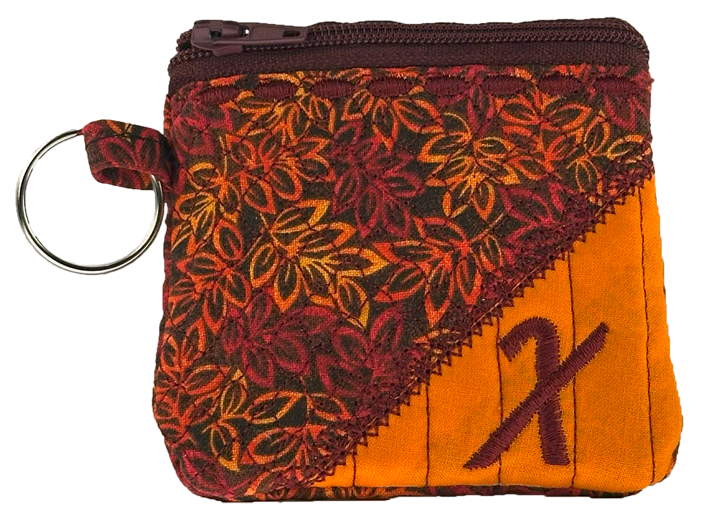 A charming 3″ x 3″ fully lined embroidered coin or accessory pouch, complete with a handy keyring attachment.